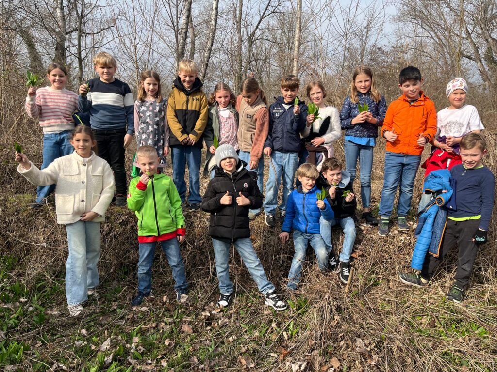 In der Au sammelten die Kinder der 3a fleißig Bärlauch und verarbeiteten diesen dann mit Hilfe der 4b zu einem leckeren Aufstrich!