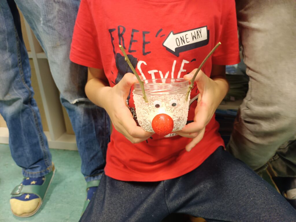 Kurz vor den Ferien durfte die 1b noch Weihnachtsstimmung verbreiten. Die Eltern waren sichtlich begeistert und die Kinder froh, dass sie ihren 1. Auftritt so bravourös gemeistert haben.
